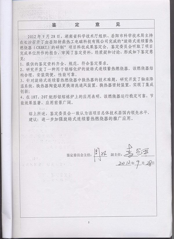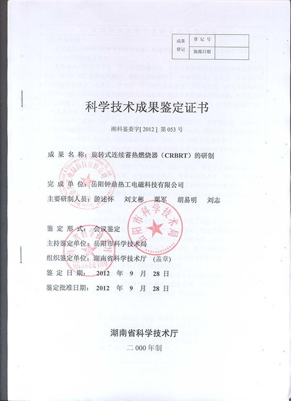 燃燒器科學(xué)技術(shù)成果鑒定證書